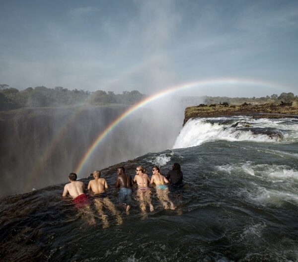 Swim safely at the edge of the world’s largest waterfall in a natural infinity pool formed by